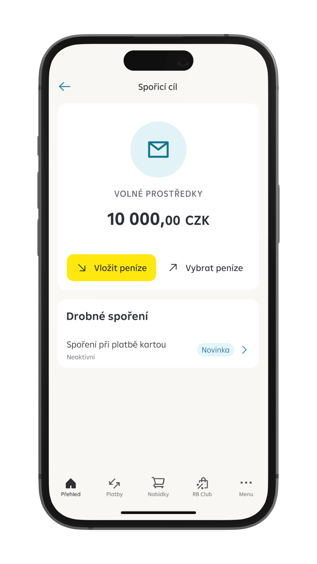 V aplikaci Raiffeisen bankovnictví můžete sledovat, kolik se vám díky Drobnému spoření povedlo ušetřit.