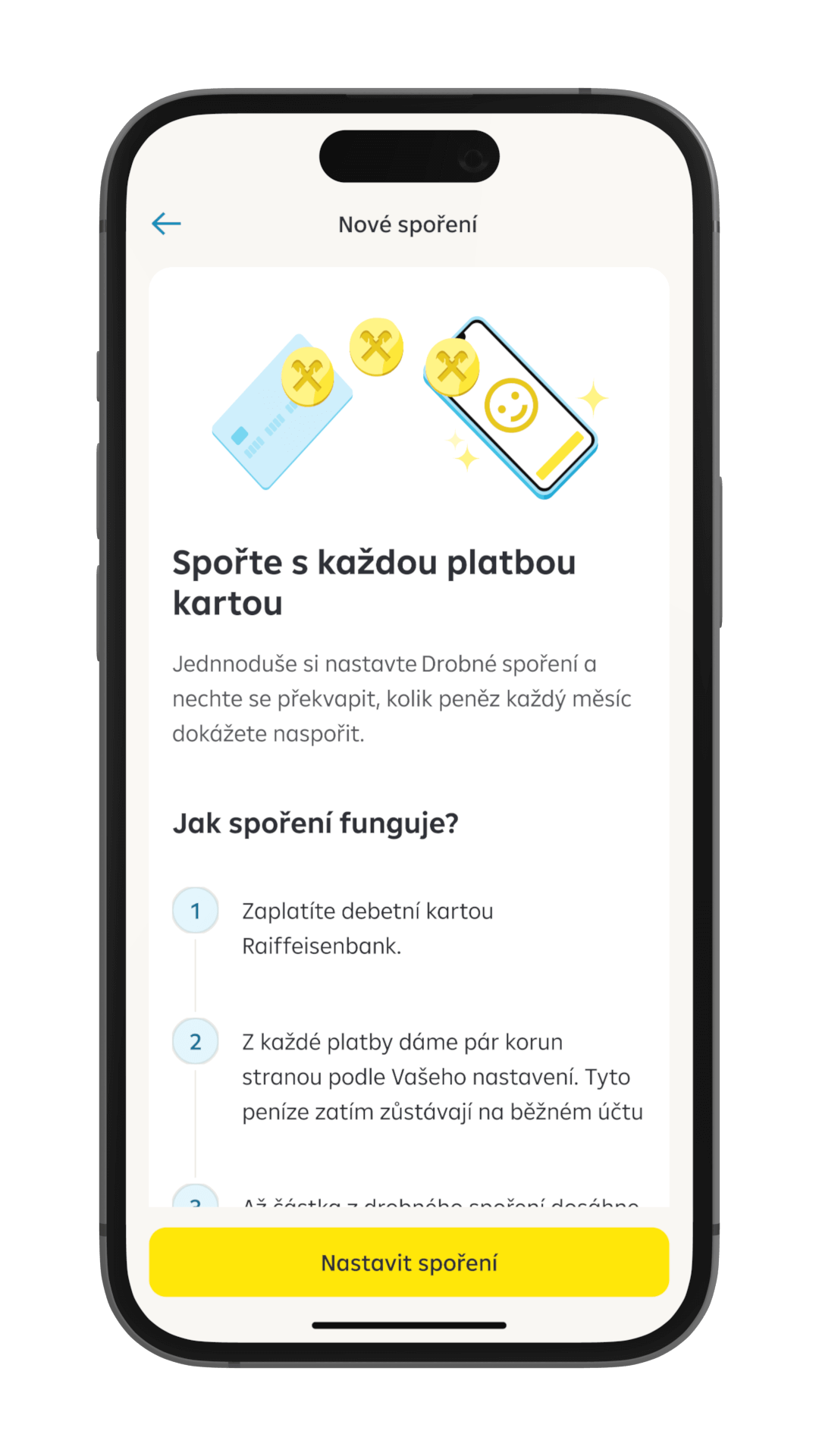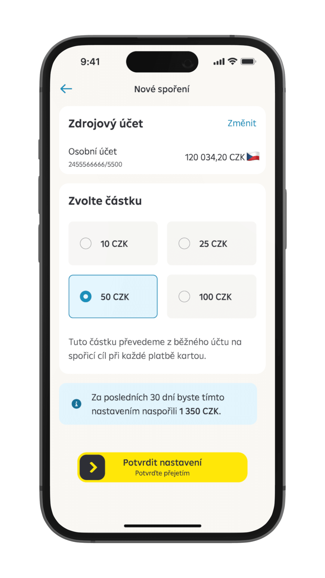 Zvolte si částku, jakou bude při každé platbě kartou spořit.